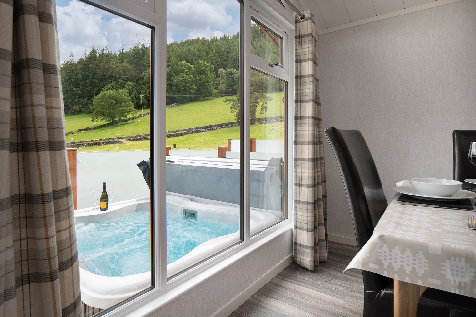 The spacious decking overlooking the well-manicured grounds is the perfect spot for your morning coffee, to indulge in some alfresco dining or soak up the sunshine. The sunken Jacuzzi hot tub is perfect to elevate your experience, and to make the most of the beautiful surroundings.