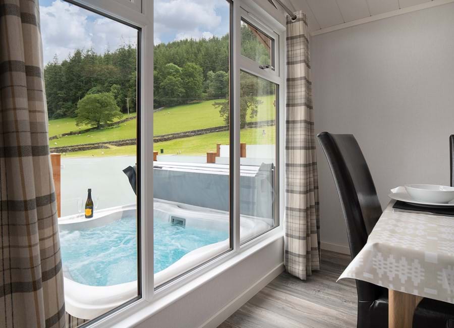 The spacious decking overlooking the well-manicured grounds is the perfect spot for your morning coffee, to indulge in some alfresco dining or soak up the sunshine. The sunken Jacuzzi hot tub is perfect to elevate your experience, and to make the most of the beautiful surroundings.